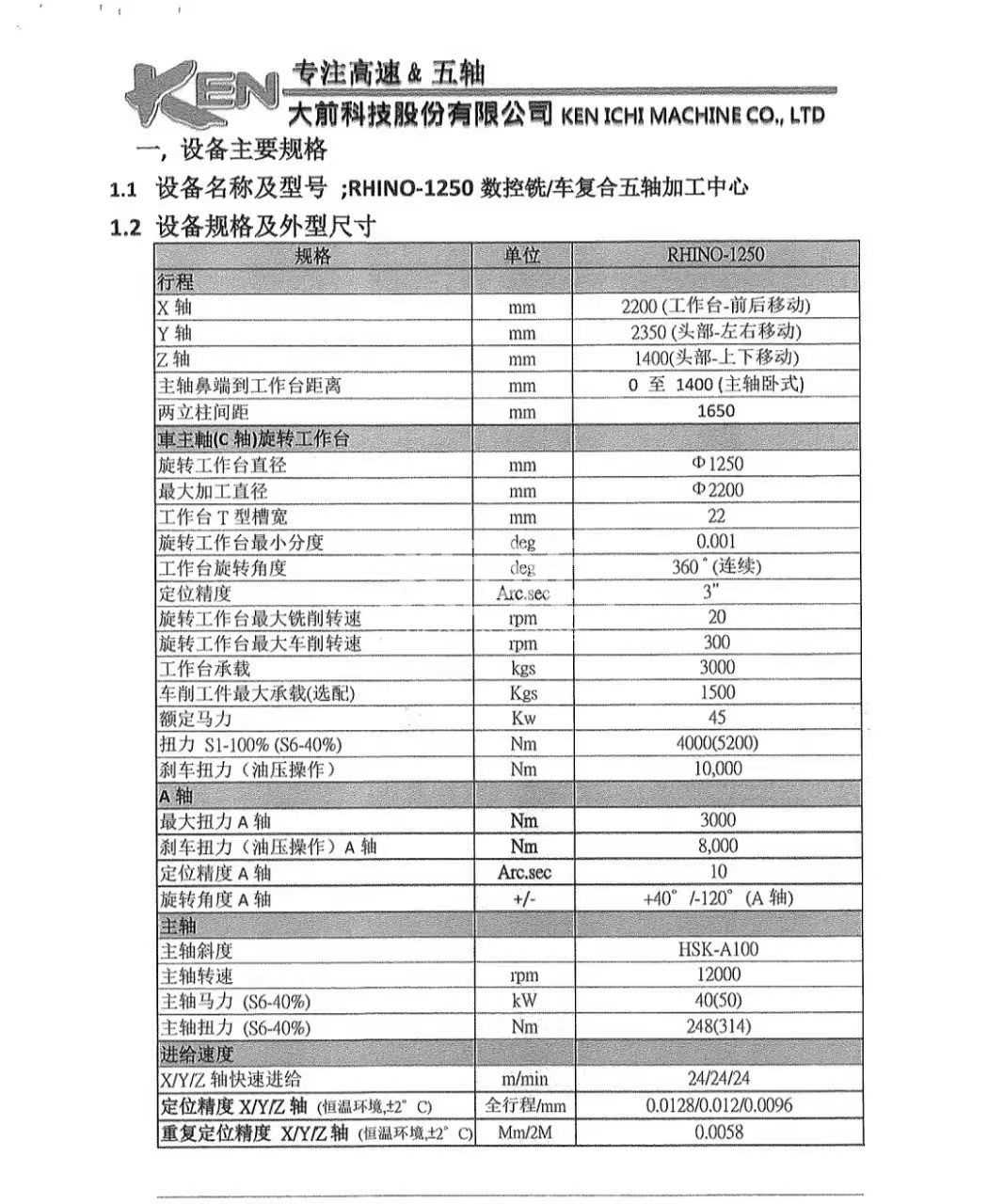 Taiwan Daqian Technology RHINO-1250 5-axis milling-turning compound center